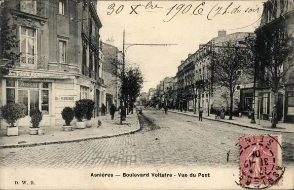 Ak Asnières sur Seine Hauts-de-Seine, Boulevard Voltaire, Vue du Pont