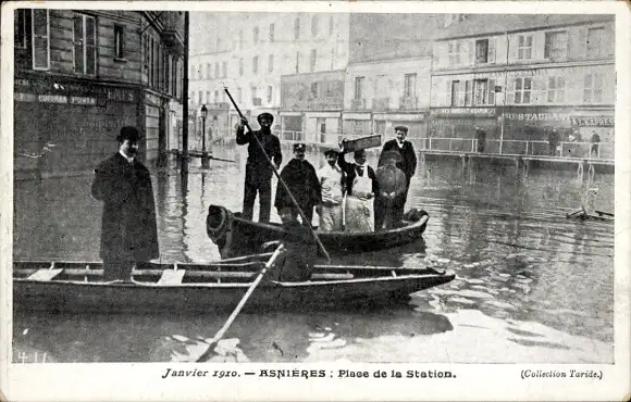 Ak Asnières sur Seine Hauts-de-Seine, Hochwasser Januar 1910, Place de la Station