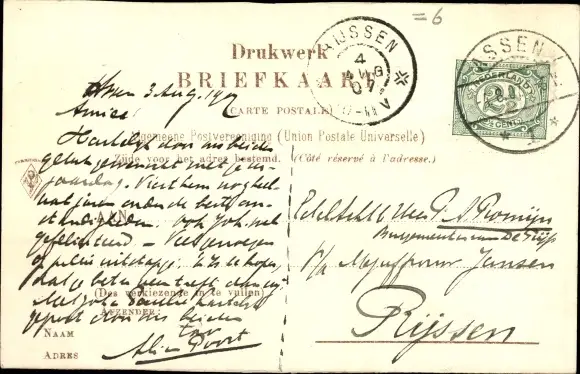 Zustand, siehe Scan, gelaufen, 1907 - ca 14 cm X 9 cm