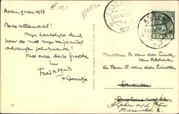 Zustand, siehe Scan, gelaufen, 1937 - ca 9 cm X 14 cm