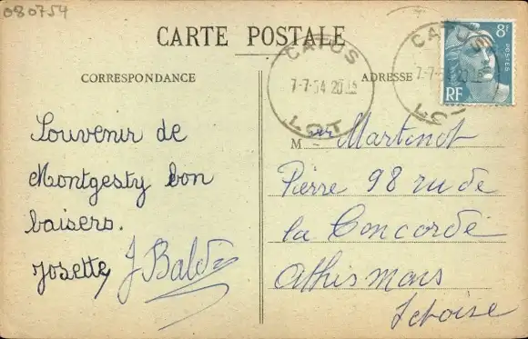 Zustand, siehe Scan, gelaufen, 1954 - ca 9 cm X 14 cm