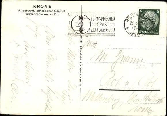 Ak Assmannshausen Rüdesheim Rhein, Gasthof Krone