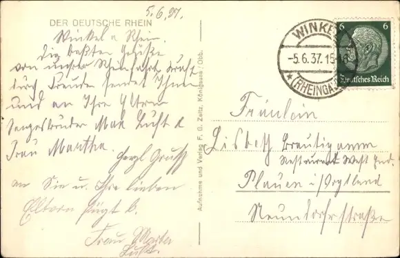 Zustand, siehe Scan, gelaufen, 1937 - ca 14 cm X 9 cm