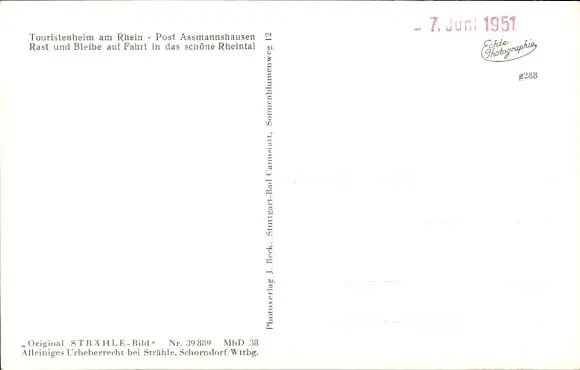 Zustand siehe Scan, ungelaufen, 1951 - ca 14 cm X 9 cm