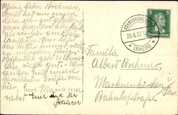 Zustand, siehe Scan, gelaufen, 1927 - ca 14 cm X 9 cm