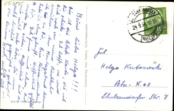 Zustand, siehe Scan, gelaufen, 1954 - ca 14 cm X 9 cm