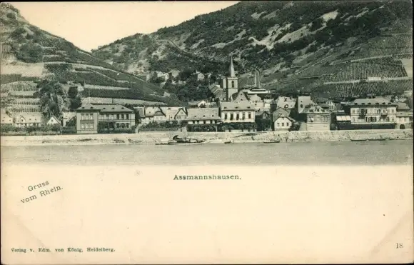 Ak Assmannshausen Rüdesheim am Rhein, Ortsansicht