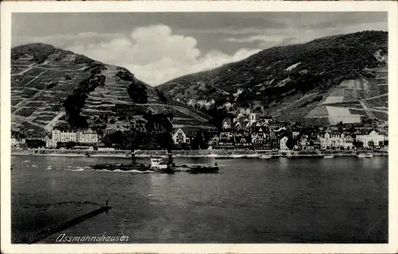 Ak Assmannshausen Rüdesheim am Rhein, Ortschaft mit Dampfer