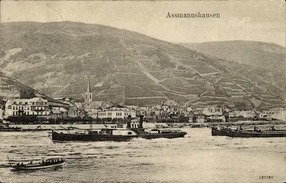 Ak Assmannshausen Rüdesheim am Rhein, Teilansicht, Schiffe