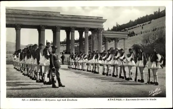 Ak Athen Griechenland, Euzones devant le Stade