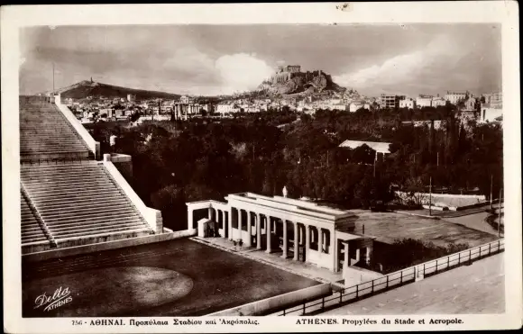 Ak Athen Griechenland, Propylees du Stade et Acropole