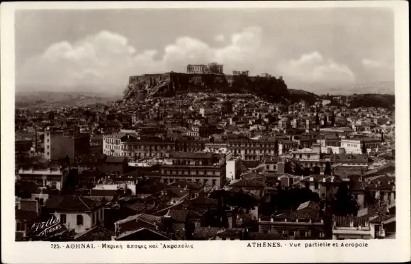 Ak Athen Griechenland, Vue partielle et Acropole, Stadt, Akropolis