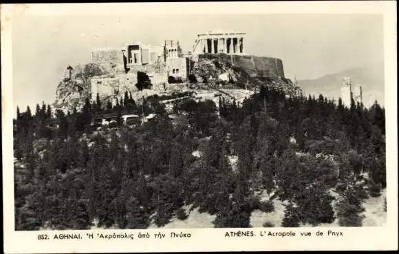 Ak Athen Griechenland, l'Acropole vue de Pnyx