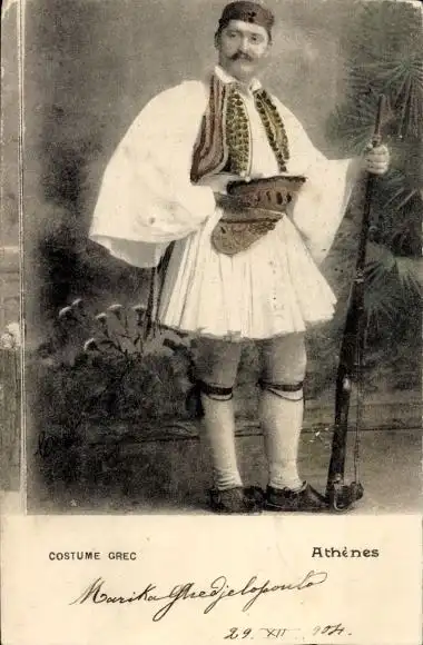 Ak Athen, Mann in griechischer Tracht, Porträt