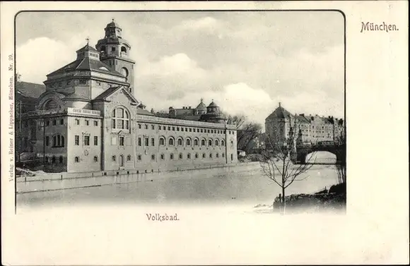 Ansichtskarte, Postkarte, Badeanstalt, Schwimmbad, Freibad, Strandbad, Volksbad