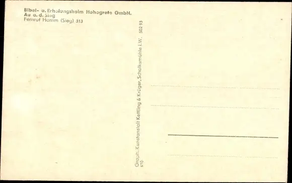 Ak Au Windeck an der Sieg, Bibel- und Erholungsheim Hohegrete, Außenansicht, Garten