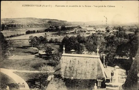Ak Aubergenville Yvelines, Vue prise du Château, Panorama et ensemble de la Ferme