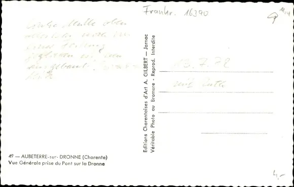 Ak Aubeterre sur Dronne Charente, Vue générale prise du Pont sur la Dronne