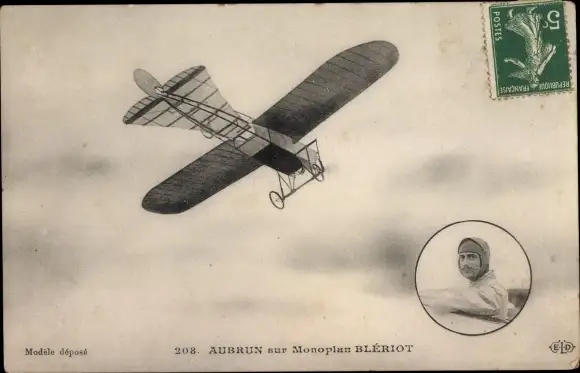 Ak Aubrun sur Monoplan Blériot, Pilot, Flugpionier