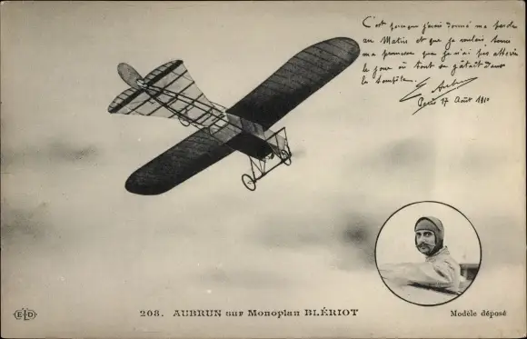 Ak Aubrun sur Monoplan Blériot, Pilot, Flugpionier