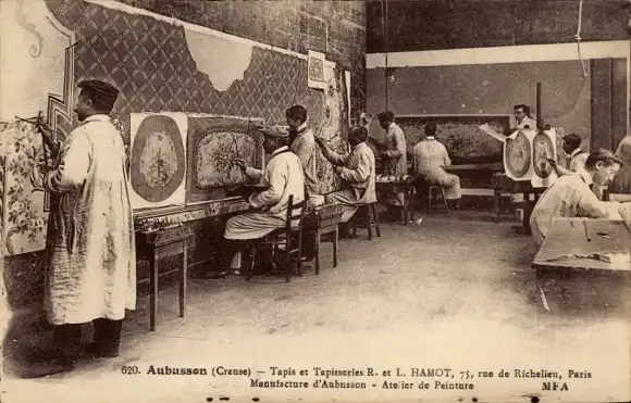 Ak Aubusson Creuse, Tapis et Tapisseries R. et L. Hamot, Manufacture, Atelier de Peinture