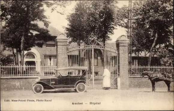Ak Auchel Pas de Calais,Hopital, Auto, Nonne