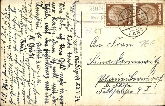 Zustand, siehe Scan, gelaufen, 1934 - ca 14 cm X 9 cm