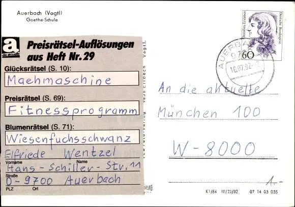 Zustand, siehe Scan, gelaufen, 1992 - ca 15 cm X 10 cm
