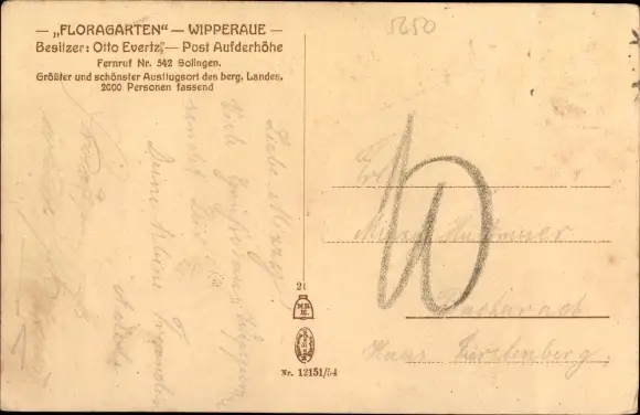 Ak Aufderhöhe Solingen, Wipperaue, Floragarten