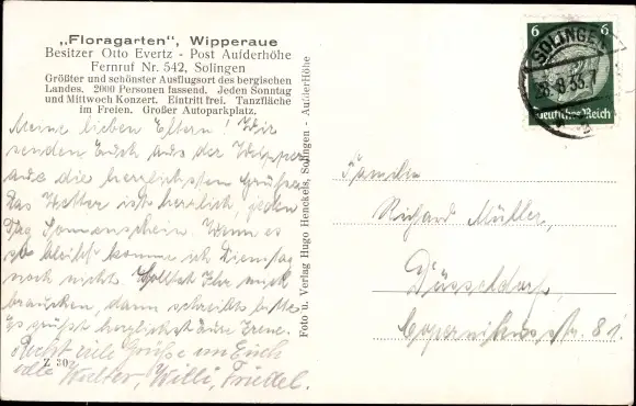 Zustand, siehe Scan, gelaufen, 1933- Inh. Otto Evertz - ca 14 cm X 9 cm