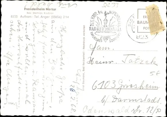 Ak Aufham Anger in Oberbayern, Fremdenheim Merkur