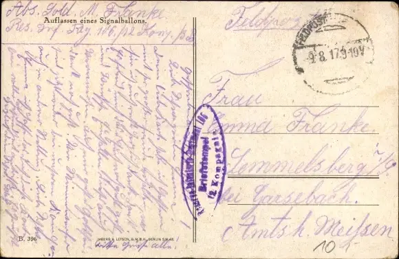 Zustand, siehe Scan, gelaufen, 1917 - ca 9 cm X 14 cm