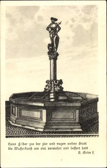 Ak Augsburg in Schwaben, Der Velberbrunnen im 16. Jahrhundert, Spruch
