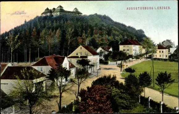Ak Augustusburg Erzgebirge, Schloss, Wohnhäuser