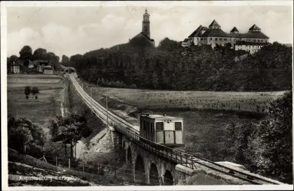 Ak Augustusburg im Erzgebirge, Drahtseilbahn, Schloss