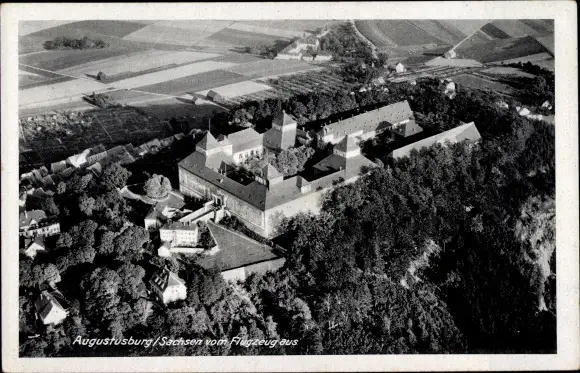 Ak Augustusburg im Erzgebirge, Fliegeraufnahme, Schloss