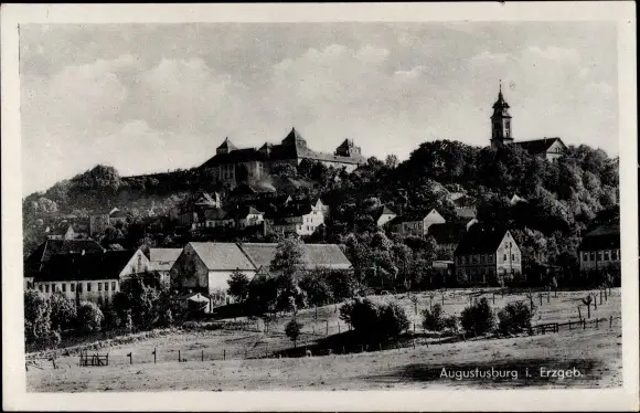 Ak Augustusburg im Erzgebirge, Ortsansicht mit Schloss und Kirche