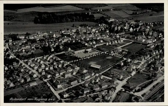 Ak Aulendorf in Württemberg, Luftaufnahme von Stadtansicht, Häuser, Felder