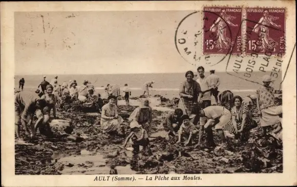 Ak Ault Somme, Muschelfischer am Strand