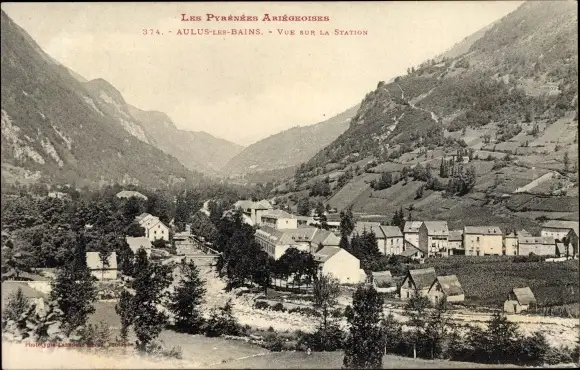 Ak Aulus les Bains Ariege, Vue sur la Station