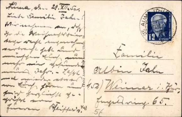 Zustand, siehe Scan, gelaufen, 1950 - ca 14 cm X 9 cm
