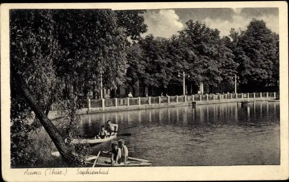 Ak Auma in Thüringen, Sophienbad, Ruderboot