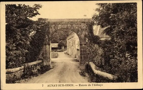 Ak Aunay sur Odon Calvados, Entrée de l´Abbaye