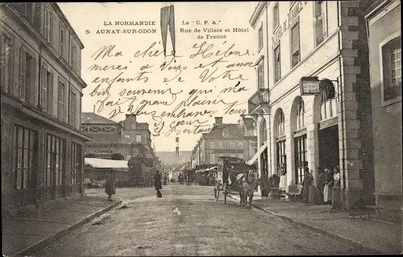 Ak Aunay sur Odon Calvados, Rue de Villers, Hotel de France