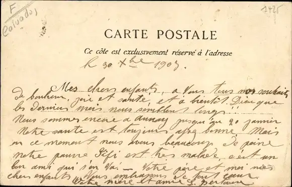 ungelaufen, datiert 1903, Rückseite beschrieben, leichte Knickspur unten, sonst guter Zustand