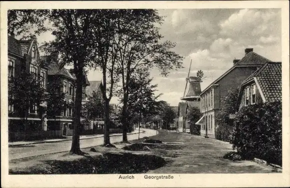 Ak Aurich in Ostfriesland, Georgstraße, Windmühle