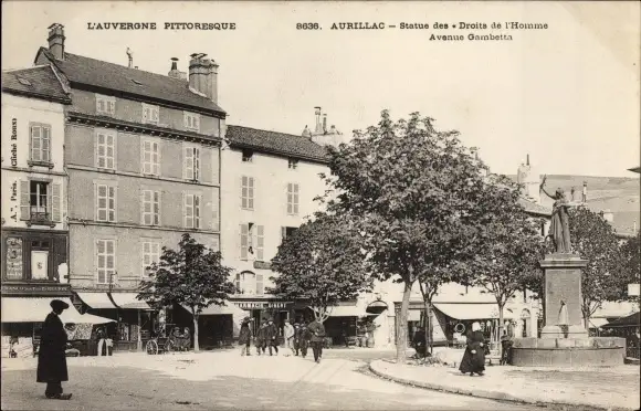 Ak Aurillac Cantal, Statue des Droits de l'Homme, Avenue Gambetta