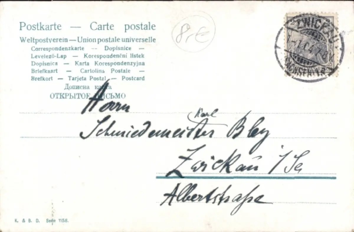 Zustand, siehe Scan, gelaufen, 1904 - ca 14 cm X 9 cm