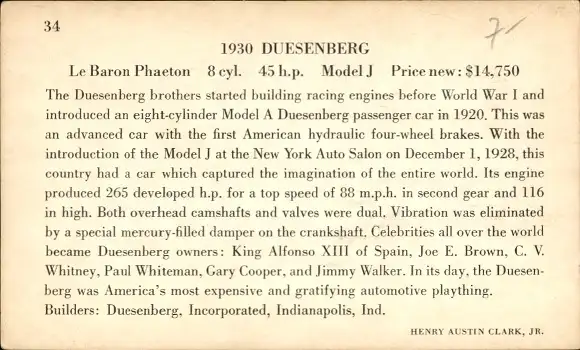 Ak Automobil 1930 Duesenberg, Baron Phaeton, Modell J