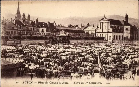 Ak Autun Saône-et-Loire, Place du Champ-de-Mars, Messe am 1. September